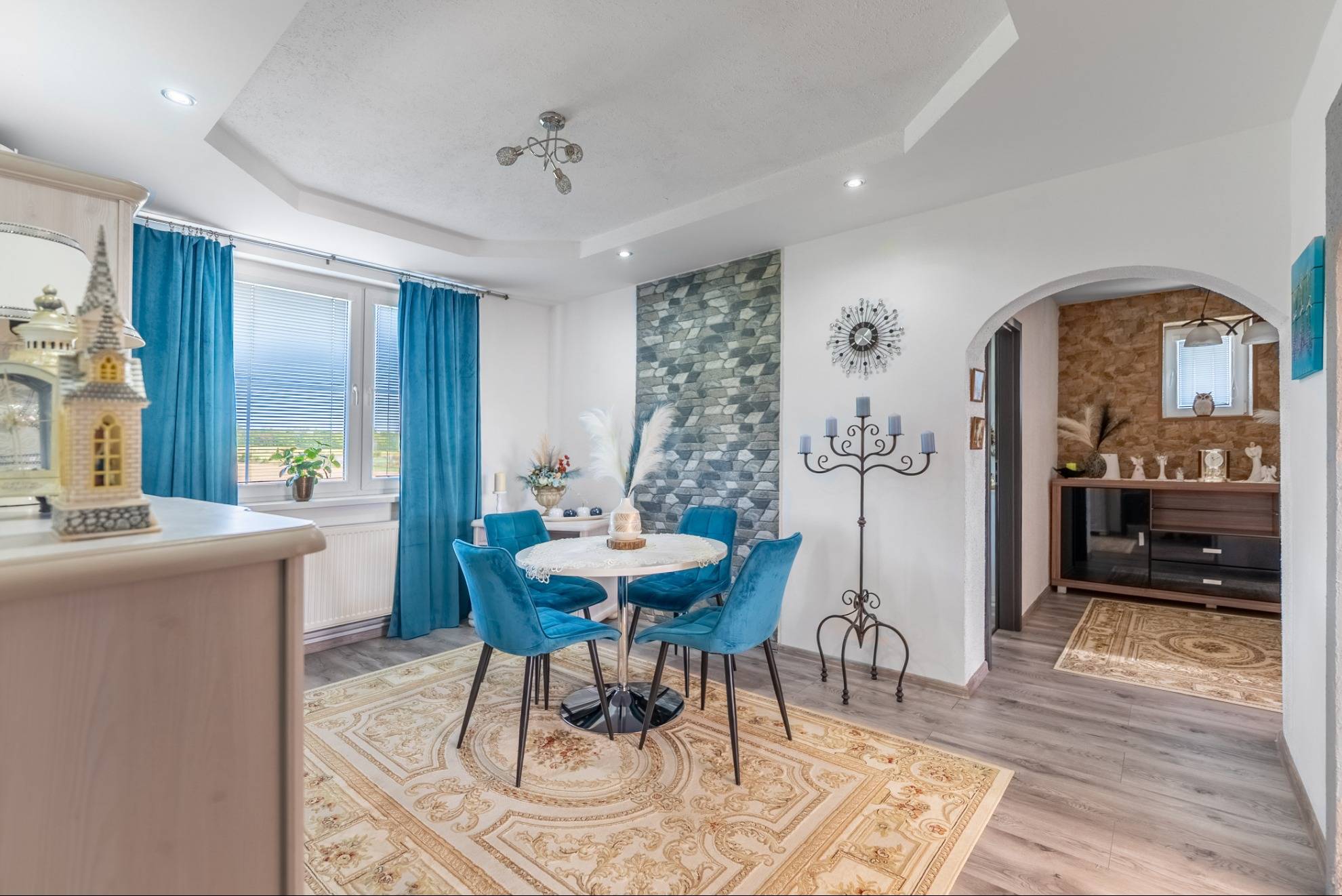 V zastúpení klienta Vám ponúkame na predaj 4 izbový krásny priestranný byt v malebnej dedinke Štefanová okr. Pezinok, obklopený krásami Malokarpatského regiónu. Tento priestranný byt s veľkorysou výmerou 95 m² je ideálnou voľbou pre mladý pár alebo rodinu, ktorí hľadajú komfortné bývanie mimo ruchu veľkomesta, no stále s výbornou dostupnosťou do Bratislavy, Pezinka, Senca či Trnavy. Byt sa nachádza v bytovom dome bez výťahu na druhom nadzemnom podlaží. Dispozícia bytu: vstupná chodba, kúpelňa so sprchovým kútom, samostatné WC, priestranná jedáleň ktorá zároveň môže slúžiť ako obývacia izba, kuchyňa, obývacia izba s možným výstupom na balkón, dve samostatné izby, dalšia menšia chodba, ktorá v minulosti slúžila ako menšia izba. Veľkou výhodou bytu je samostatné kúrenie plynovým kotlom, ktorý sa nachádza v kúpelni. Byt prešiel kompletnou rekonštrukciou: okná, elektroinštalácia, podlahy, klimatizácia, nábytok, zateplenie bytu z vnútornej strany. Byt sa predáva komplet zariadený. K bytu prislúcha garáž a pivnica v prízemí bytového domu. V zadnej časti bytového domu sa nachádza drevený altánok so sedením, záhradka ideálna na pestovanie ale aj ako regenerácia či oddych v súkromí. Za bytovým domom je dostatok parkovacieho státia. Mesačné náklady na bývanie: 200,-€ Kúpou voľný ihneď. Kúpna cena: dohodou LOKALITA: Obec Štefanová leží v srdci Malokarpatského regiónu, len pár minút od obľúbených obcí Budmerice (3 km), Doľany (3,5 km) a Častá (3 km). Autobusové spojenie je hneď pred bytovým domom, vlakové spojenie zabezpečuje stanica v Cíferi (10 km). Obec je menšia dedinka s možnosťou pokojného a bezpečného bývanie s výbornou dostupnosťou do Pezinka, Trnava a Bratislavy. V prípade otázok alebo obhliadky ma neváhajte kontaktovať Hašáková Judita 0905 733 088 • v cene je zahrnuté profesionálne realitné a právne poradenstvo, vrátane vypracovania zmluvnej dokumentácie a návrhov na vklad vlastníckeho práva do katastra nehnuteľností • ak hypotekárny úver budete riešiť prostredníctvom našej kancelárie, bezplatne Vám vybavíme znalecký posudok • FOX reality, s.r.o. je členom NARKS (Národná asociácia realitných kancelárií Slovenska).